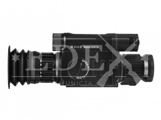 Dzięki zastosowaniu zintegrowanego iluminatora podczerwieni 850 nm (3 poziomy mocy, regulacja skupienia) zasięg celownika w całkowitej ciemności wynosi ponad 200 m. Stosując dodatkowy zewnętrzny iluminator, zasięg urządzenia można oczywiście bez problemu powiększyć.