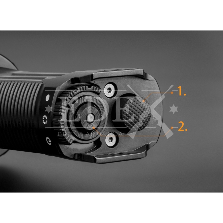 Fenix TK35UE 2018 został wyposażony w zaawansowany włącznik, w skład którego wchodzą: duży włącznik taktyczny, mały włącznik funkcyjny oraz włącznik obrotowy do przełączania trybów.