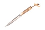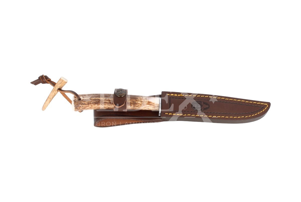Rękojeść - pokryto naturalnymi okładzinami z poroża jelenia (deer stag), zapewniając ekskluzywny wygląd oraz wygodny pewny chwyt. Nóż bardzo dobrze leży w dłoni, nie ślizga się, można nim łatwo operować w każdych warunkach. W tylnej części rękojeści otwór z przeplecionym skórzanym rzemieniem.