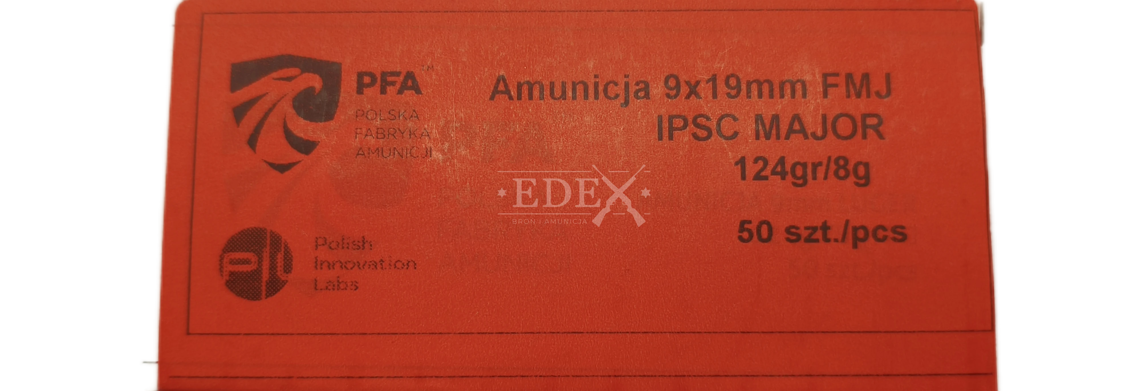 Amunicja PFA 9x19mm FMJ 124 gr/ 8,0g IPSC Major ( op.50 szt.)