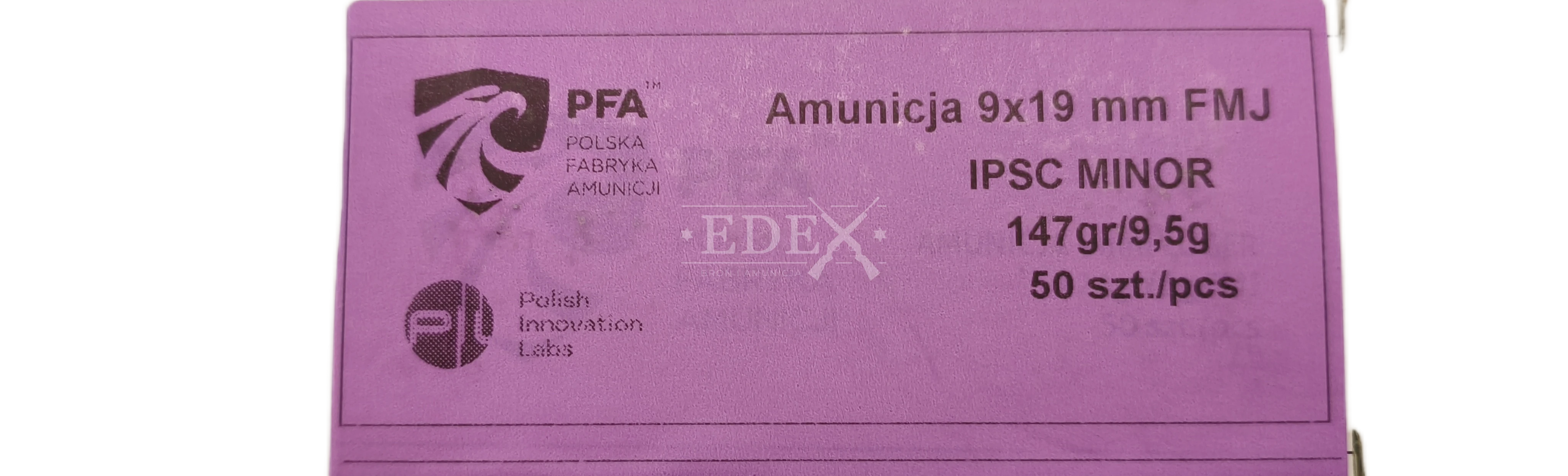 Amunicja PFA 9x19mm FMJ 147 gr/ 9,5g IPSC Minor ( op.50 szt.)