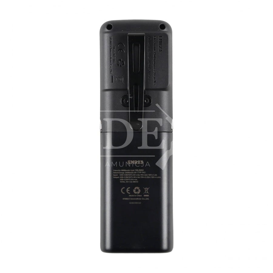 Wyposażony w akumulator o pojemności aż 8000 mAh, odstraszacz EMR23 nie tylko zapewni Ci do 8 godzin ochrony przed owadami, ale także zasili inne urządzenia. Funkcja powerbanku z wyjściem USB-C pozwala na szybkie ładowanie telefonu, latarki, nawigacji czy innego niezbędnego sprzętu podczas wypraw.