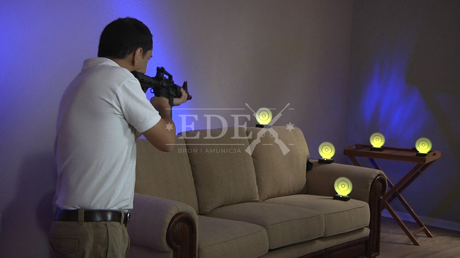 Doskonal trening taktyczny i ćwicz przejścia między celami w pomieszczeniu. Zidentyfikuj cel zagrożenia i strzelaj do jasnozielonej diody LED, która przemieszcza się pomiędzy celami.