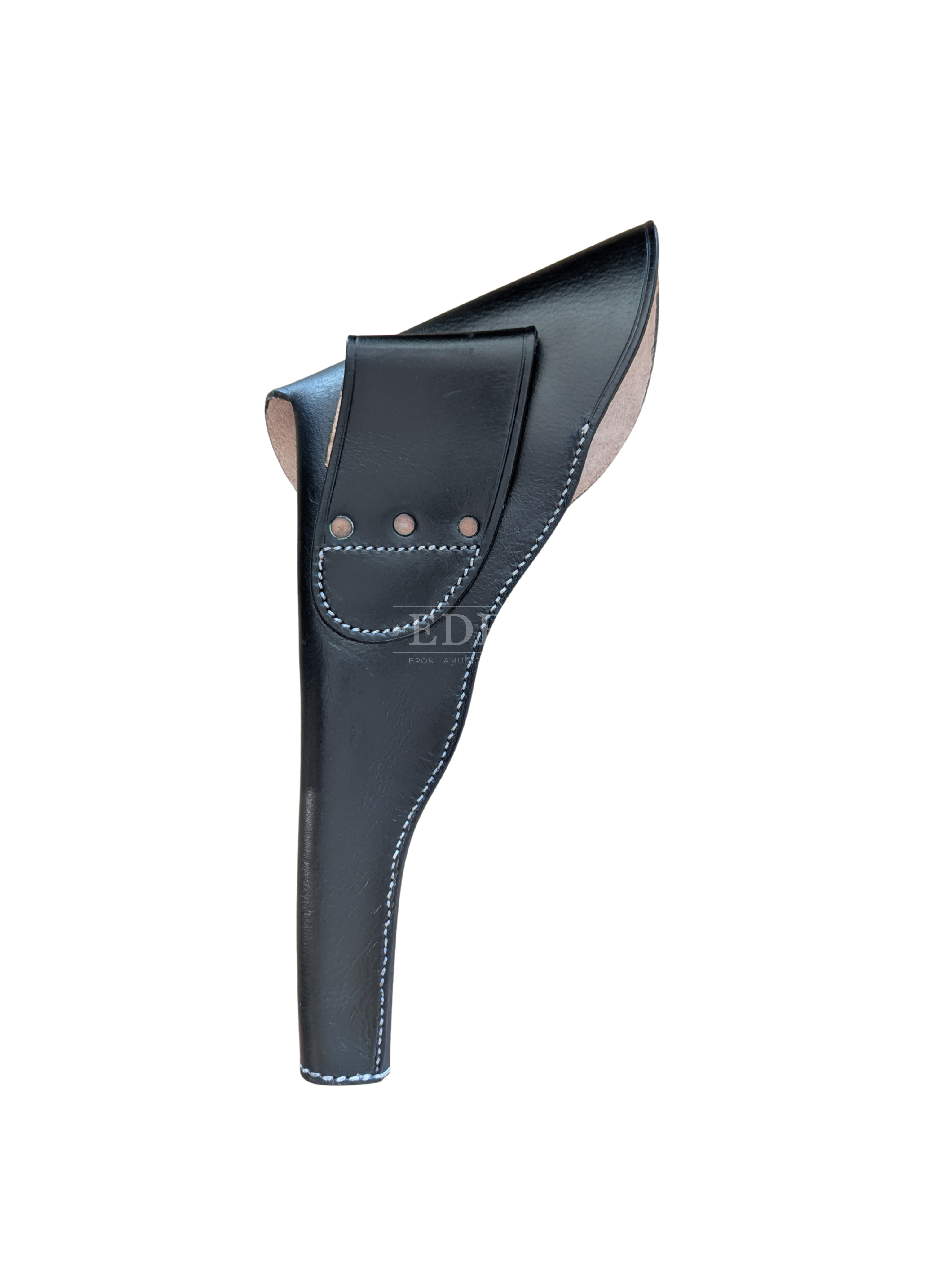 Wykonana z grubej wołowej skóry barwionej na wskroś szyta ręcznie ,brzegi kabury wyoblone i zabezpieczone przed strzępieniem się..