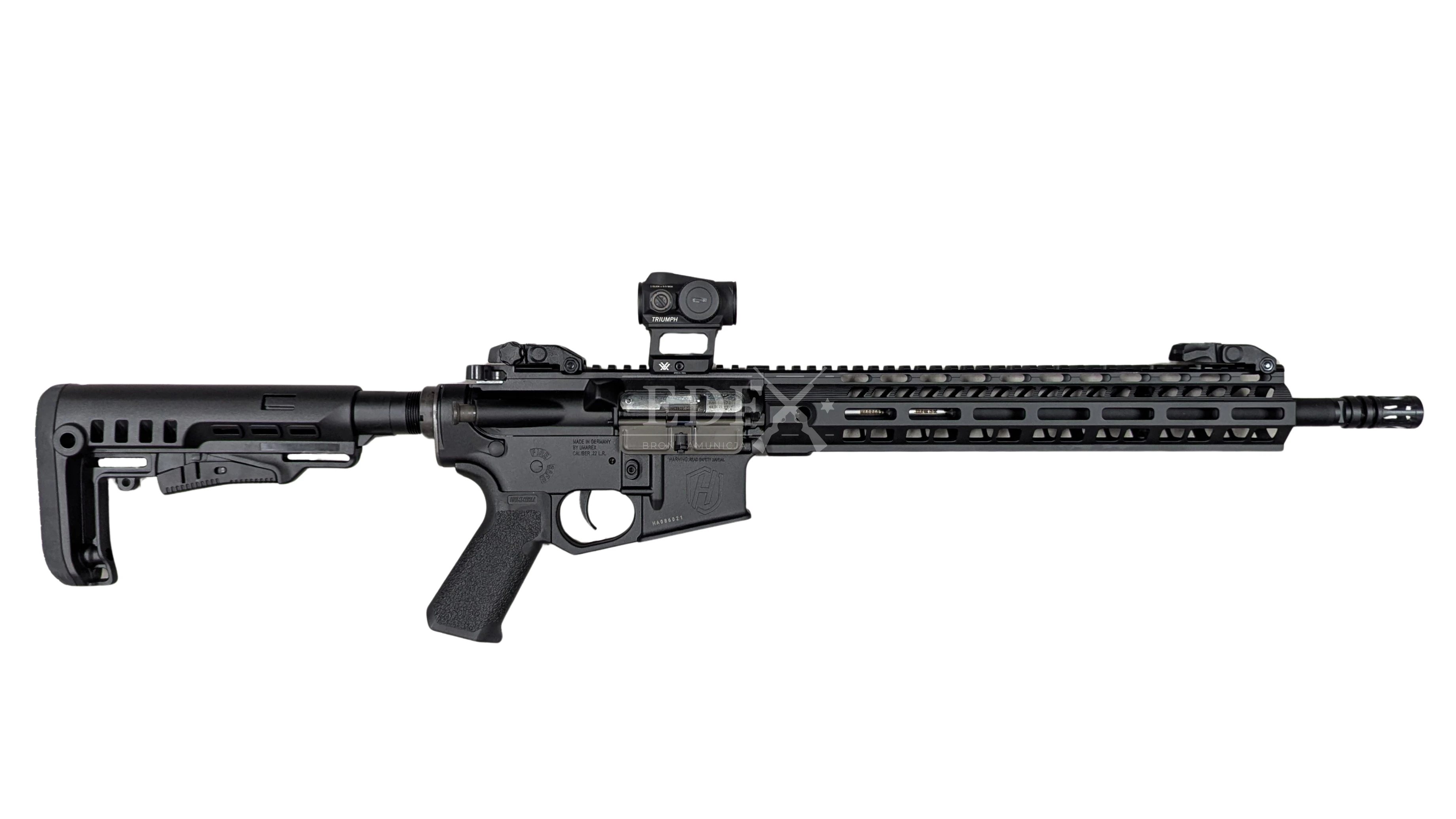 - Lufa o długości 16,1" z hamulcem wylotowym typu bird cage.