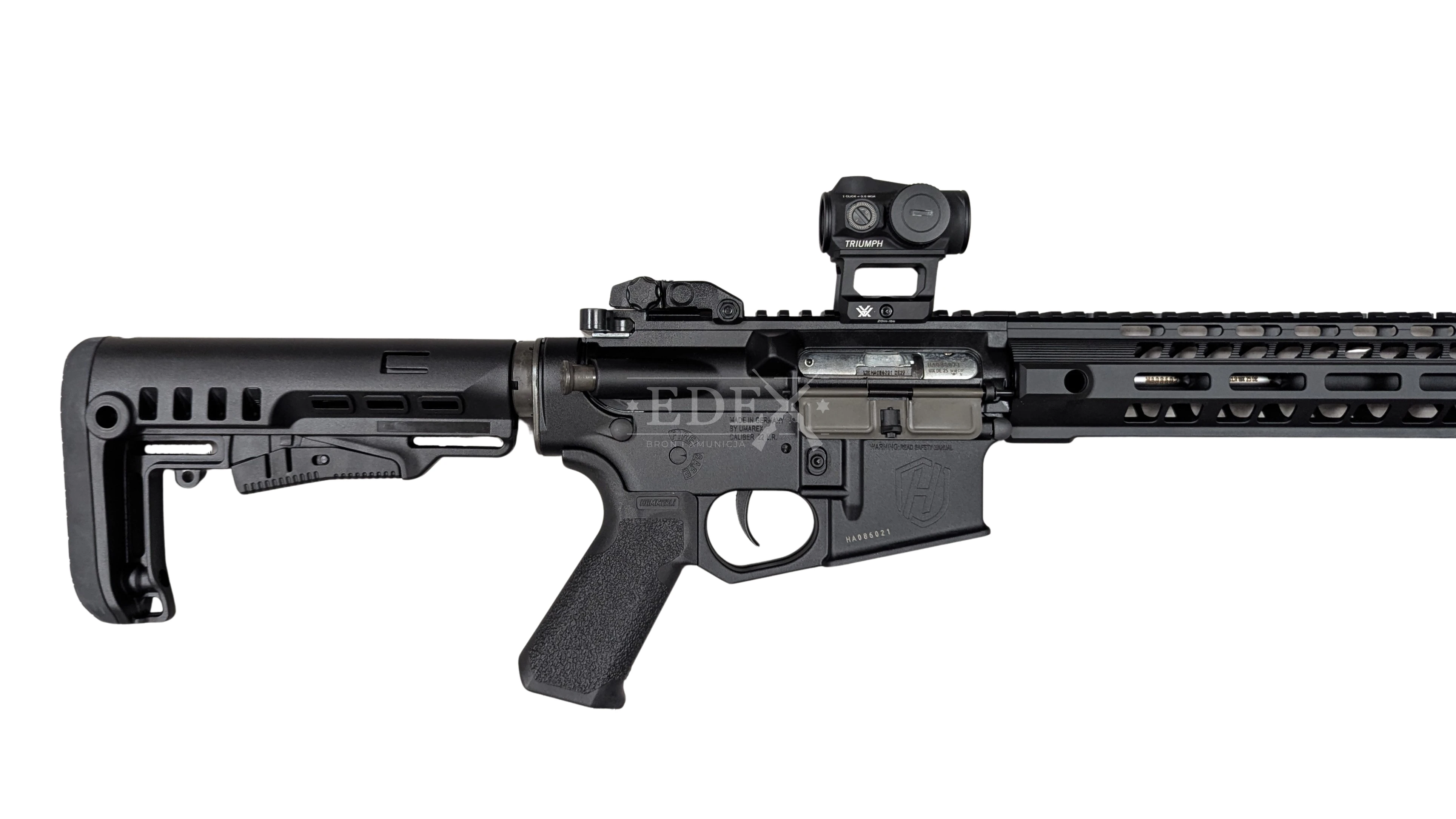 Komorę zamkową i spustową wykonano z aluminium 7075 T-6 oraz poddano wykończeniu metodą anodowania HA-III. Dwustopniowy mechanizm spustowy o ciężarze 3,85 kg ma wyraźny reset, pomagający przy szybkim strzelaniu.