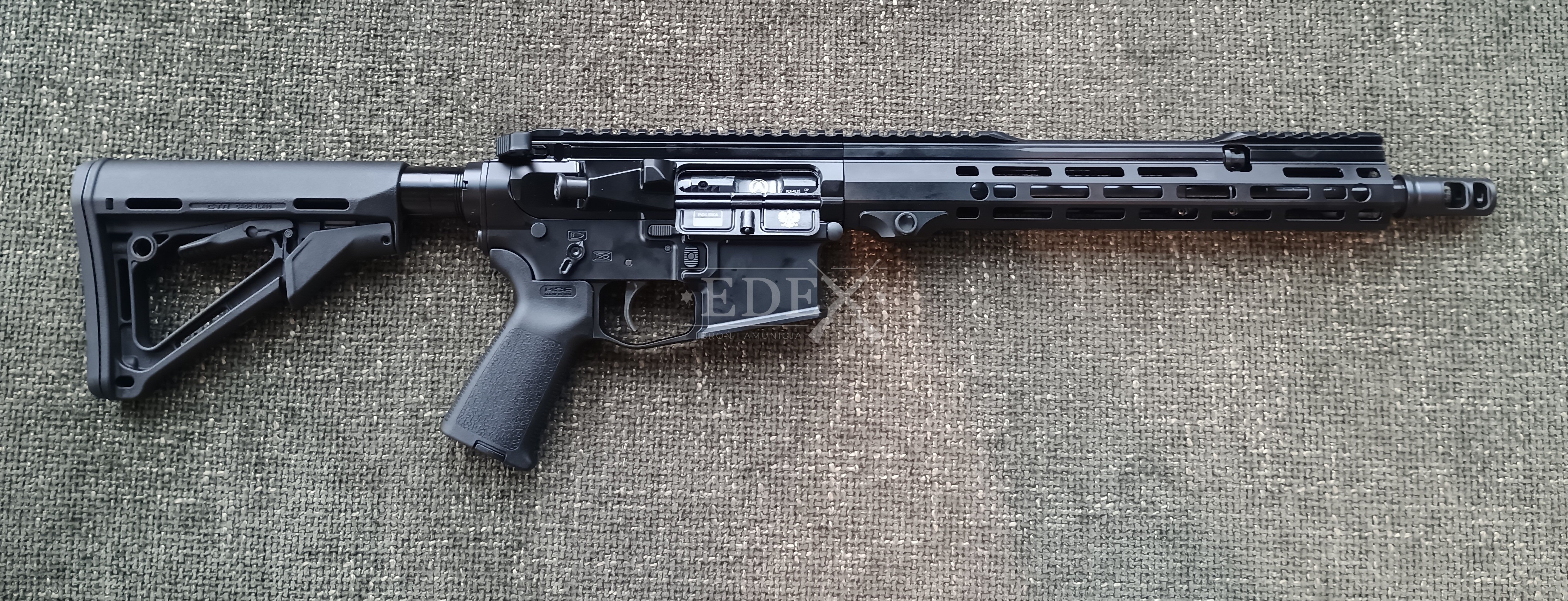Użytkownicy lewo- i praworęczni docenią pełną symetrię obsługi – wszystkie elementy kontrolne, jak bezpiecznik, zwalniacze zamka i magazynka, czy dźwignia przeładowania, są dostępne z obu stron. Całość dopełniają komponenty Magpul – kolba CTR i chwyt MoE – które gwarantują pewny chwyt i komfort pracy z karabinem nawet przez wiele godzin.