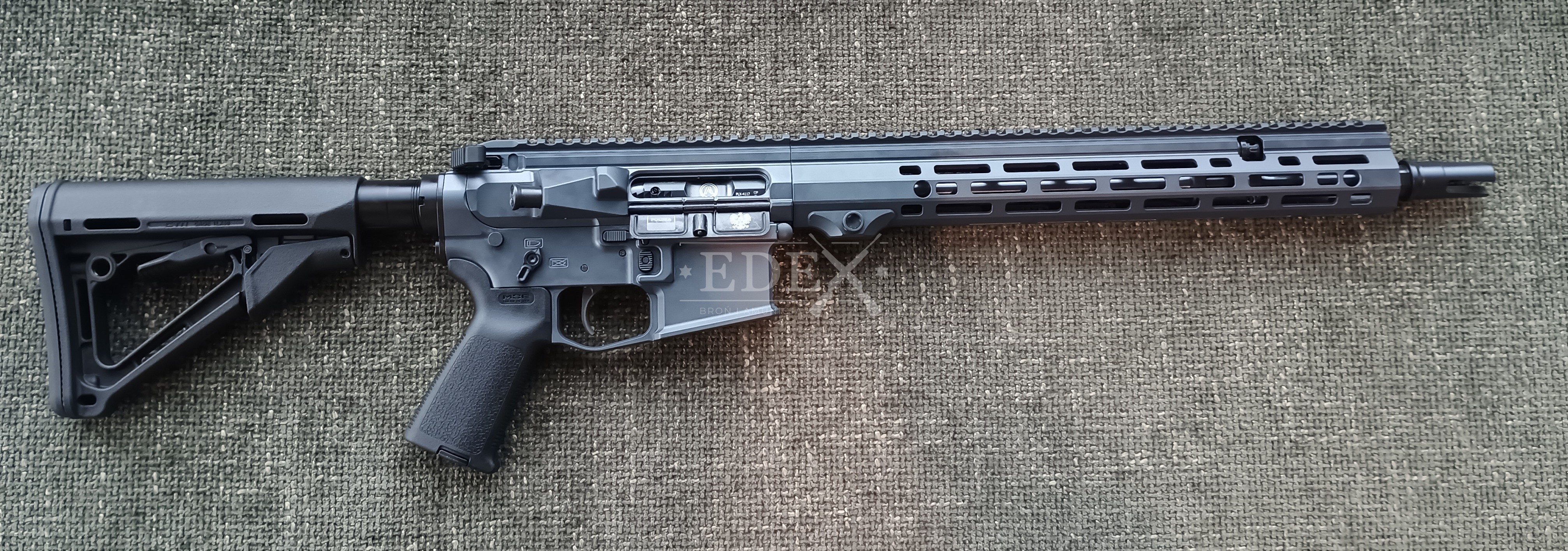 Użytkownicy lewo- i praworęczni docenią pełną symetrię obsługi – wszystkie elementy kontrolne, jak bezpiecznik, zwalniacze zamka i magazynka, czy dźwignia przeładowania, są dostępne z obu stron. Całość dopełniają komponenty Magpul – kolba CTR i chwyt MoE – które gwarantują pewny chwyt i komfort pracy z karabinem nawet przez wiele godzin.