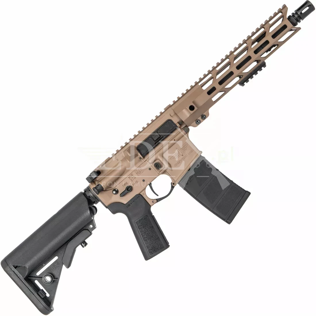 Za niezawodność działania odpowiada Bolt Carrier Group Full Auto Cut & Rated, czyli zespół suwadła przygotowany także do pracy w warunkach dużego obciążenia. Klucz gazowy jest zakuty (properly staked), co zabezpiecza go przed poluzowaniem i wydłuża czas bezawaryjnej eksploatacji. W standardzie karabinek wyposażony jest również w handguard w systemie M-LOK, wykonany z aluminium 6061-T6. To wytrzymałe, a zarazem lekkie łoże frezowane metodą CNC, które umożliwia szybką i wygodną rozbudowę karabinka o akcesoria – np. chwyt przedni, latarkę, wskaźnik laserowy czy dwójnóg. Zintegrowane punkty QD pozwalają na montaż zawieszenia w wybranym miejscu.