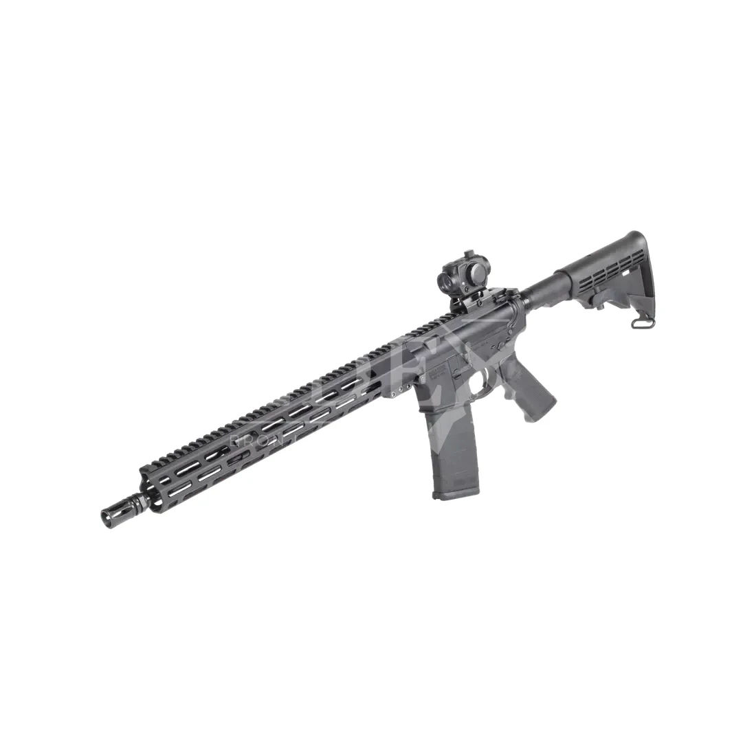 Lufa z chromowo-molibdenowej stali 4140 pokryta powłoką Armornite® gwarantuje wysoką odporność na korozję, erozję i zmienne warunki środowiskowe, a profil z gwintem 1:8" typu 5R zmniejsza tarcie pocisku, poprawia powtarzalność przestrzelin i wydłuża żywotność przewodu lufy. Karabinek wyposażono w długie, wolno-pływające łoże M-LOK (ok. 15"), które poprawia sztywność konstrukcji i eliminuje wpływ uchwytu czy bipodu na pracę lufy, a jednocześnie umożliwia szerokie możliwości konfiguracji — od montażu oświetlenia, laserów, pionowego chwytu, aż po zaawansowaną optykę taktyczną na górnej szynie Picatinny. Gwint 1/2"-28 pozwala z kolei na łatwą instalację kompensatorów, płomieniówek oraz moderatorów.