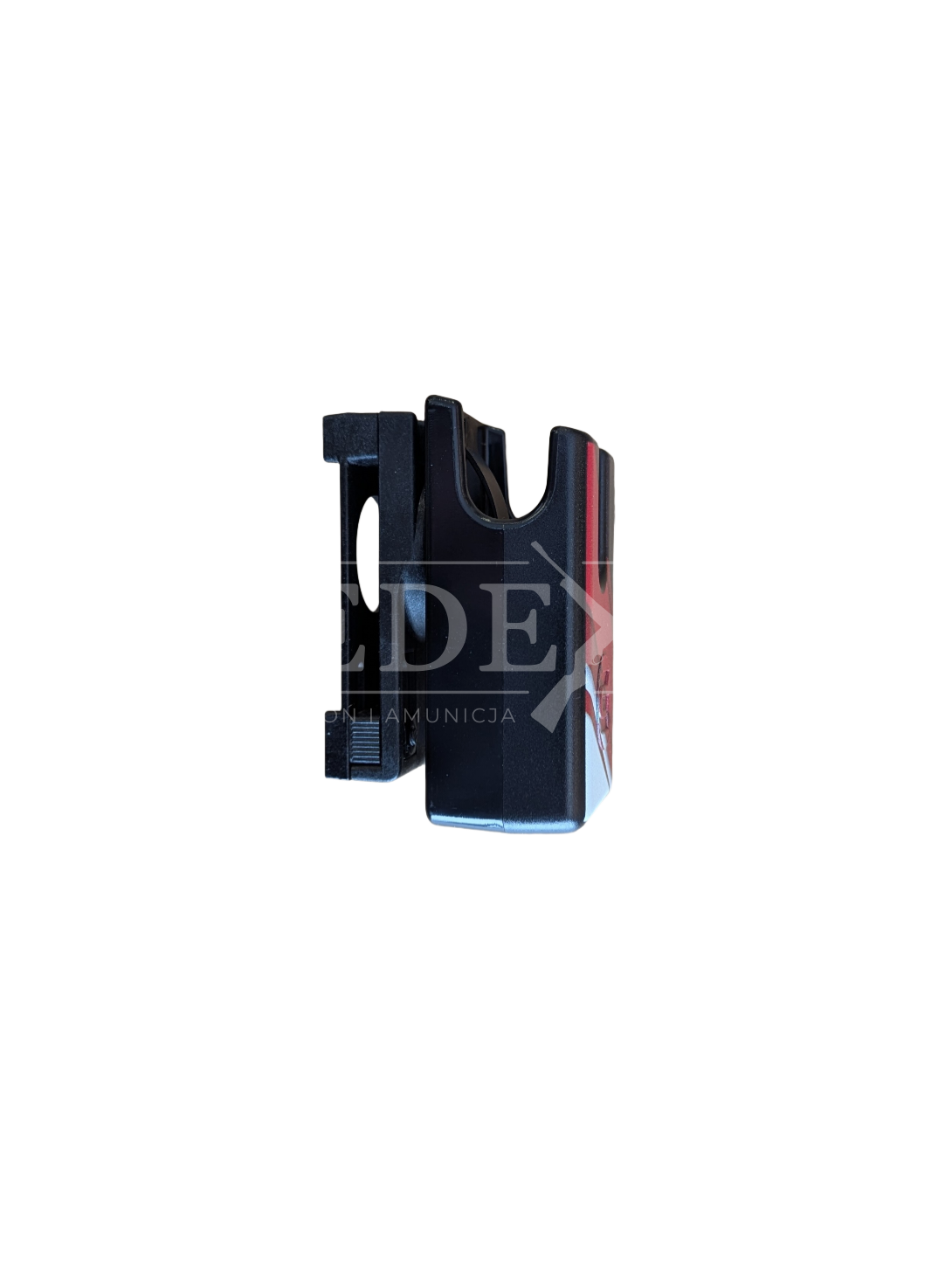 W zestawie mamy dwie ładownice, które pozwalają na dostosowanie sposobu przenoszenia magazynków. W jednym wypadku montaż jest na dłuższym boki, a w drugim na krótszym boku.