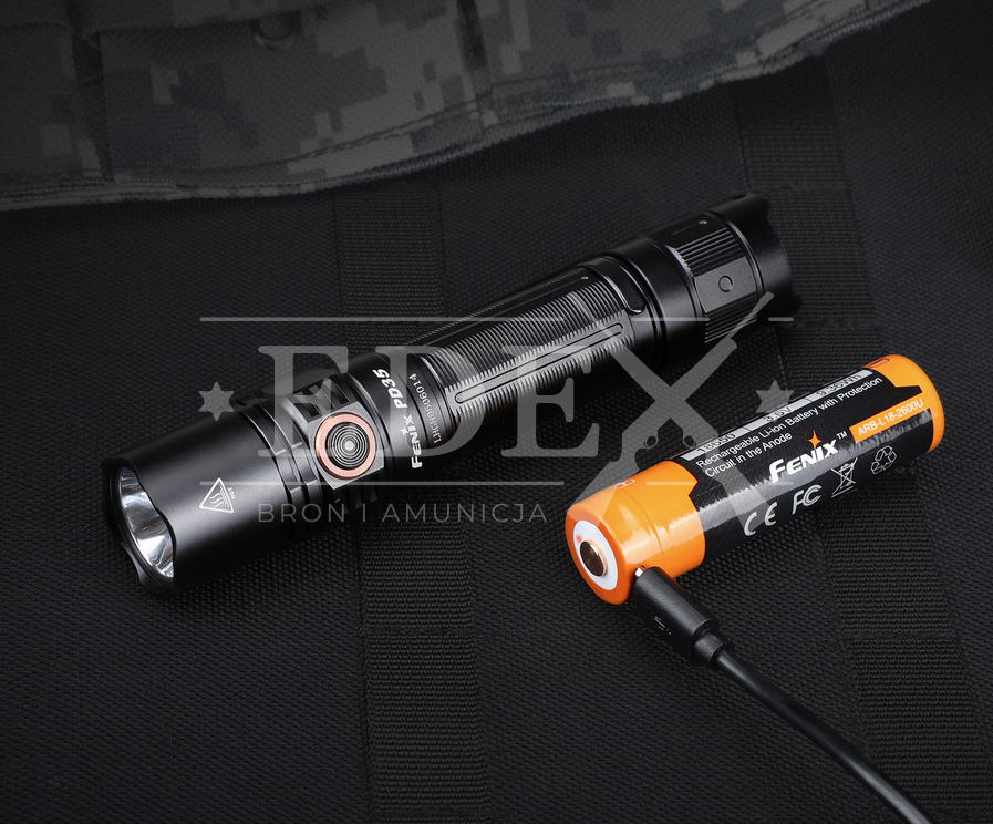 Fenix PD35 V3.0 jest zasilany za pomocą innowacyjnego ogniwa Fenix ARB-L18-2600U 18650 (w zestawie), które po pełnym naładowaniu zapewnia nawet do 230 godzin pracy (w trybie eco). Akumulator ma wbudowany port ładowania micro-USB. To praktyczne i wygodne rozwiązanie umożliwia ładowanie ogniwa bez potrzeby korzystania z zewnętrznej ładowarki. Do ładowania potrzebujemy jedynie kabla micro-USB (w zestawie) oraz źródło prądu np. poweru bank, laptopa, komputera stacjonarnego lub samochodowej ładowarki z USB. Akumulator USB pozwala nie tylko zaoszczędzić pieniądze (na zakupie ładowarki), przede wszystkim zapewnia komfort, niezależność oraz mobilność. Alternatywą dla akumulatora 18650 są jednorazowe baterie CR123, które zazwyczaj wykorzystywane w okresie zimowym z uwagi na odporność na działanie niskich temperatur oraz brak efektu samo rozładowywania.