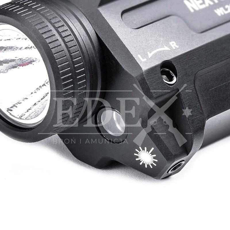 Latarka Nextorch WL21 R to latarka pistoletowa z wbudowanym celownikiem laserowym (czerwona kropka), zapewniająca maksymalną moc światła 650 lumenów i zasięgiem wiązki światła 130 m. Może być zasilana akumulatorem 16340 lub 1 baterią CR1234A. Dzięki innowacyjnemu systemowi szyn montażowych możesz samodzielnie zainstalować i zdemontować latarkę. WL21 R kompatybilna z szynami Picatinny i Glock 1913. Wykorzystuje obustronny przełącznik, który umożliwia dostęp do stałego i chwilowego włączenia dowolną ręką. Wykonany z anodyzowanego stopu aluminium lotniczego, jest wytrzymały i ma odporność na uderzenia do do 1 m. Stopień wodoodporności IPX4.
