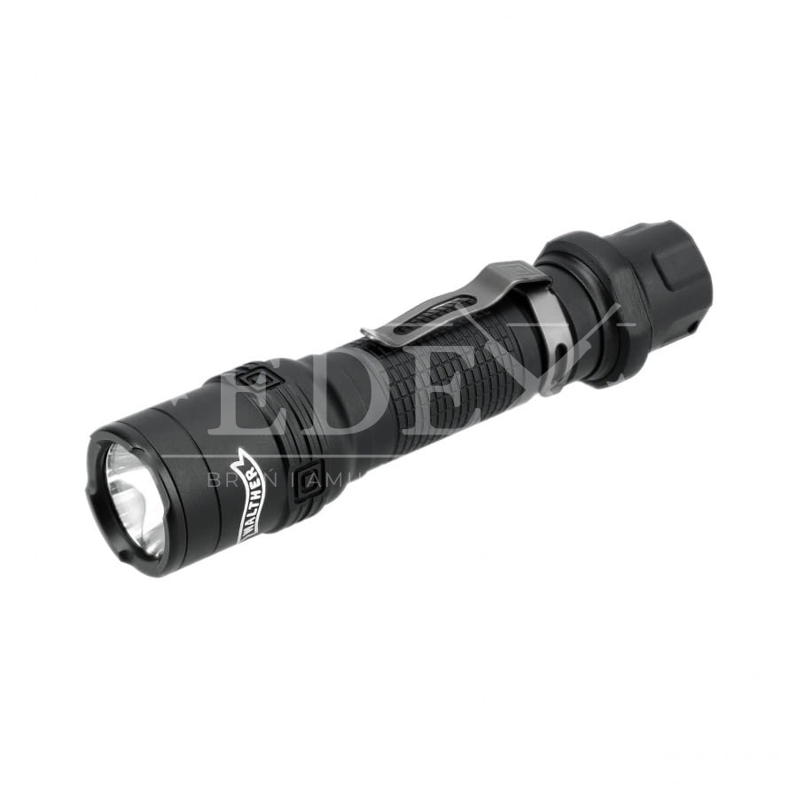 Latarka wyposażona jest w zdejmowany klips ze stali nierdzewnej oraz pierścień taktyczny. Wytrzymała obudowa z anodowanego aluminium jest wodoodporna zgodnie z normą IPX8.