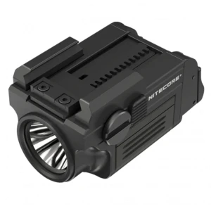 Kompaktowa latarka taktyczna do broni Nitecore NPL25 z diodą UHi 20 o maksymalnym strumieniu świetlnym do 900 lumenów, kompatybilna z szyną Glock oraz Picatinny.