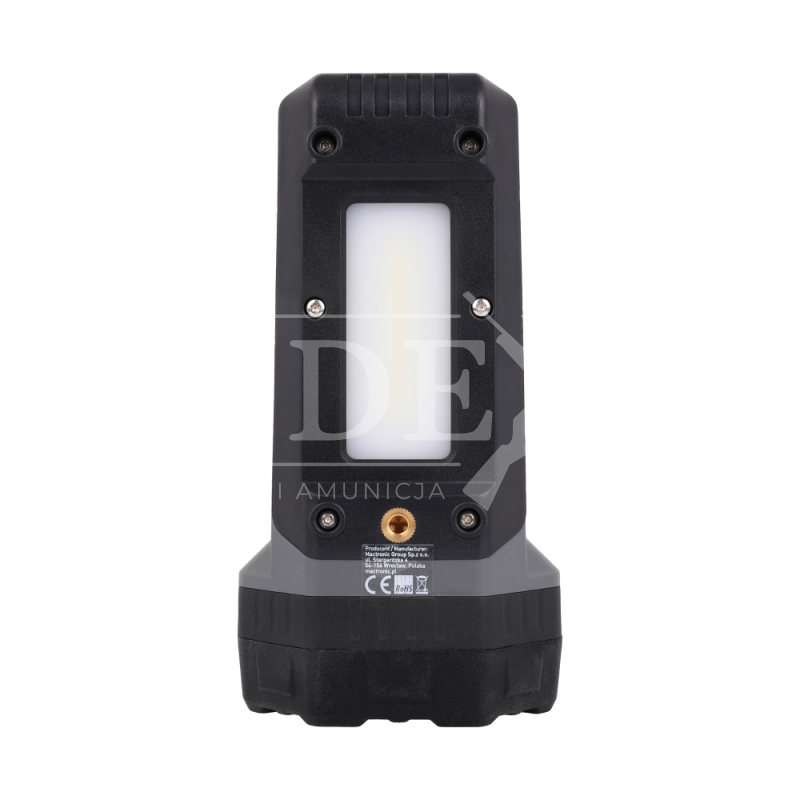 - Dwa źródła światła – z przodu dioda, z boku panel COB