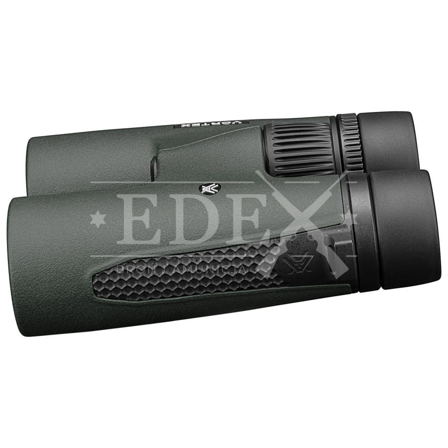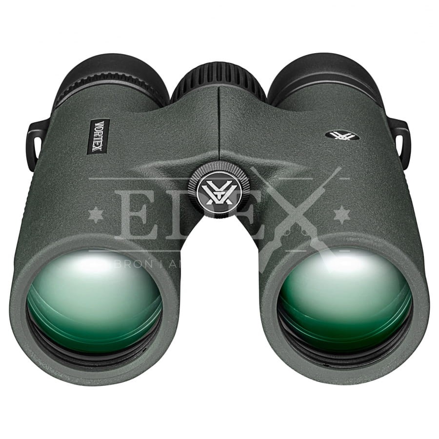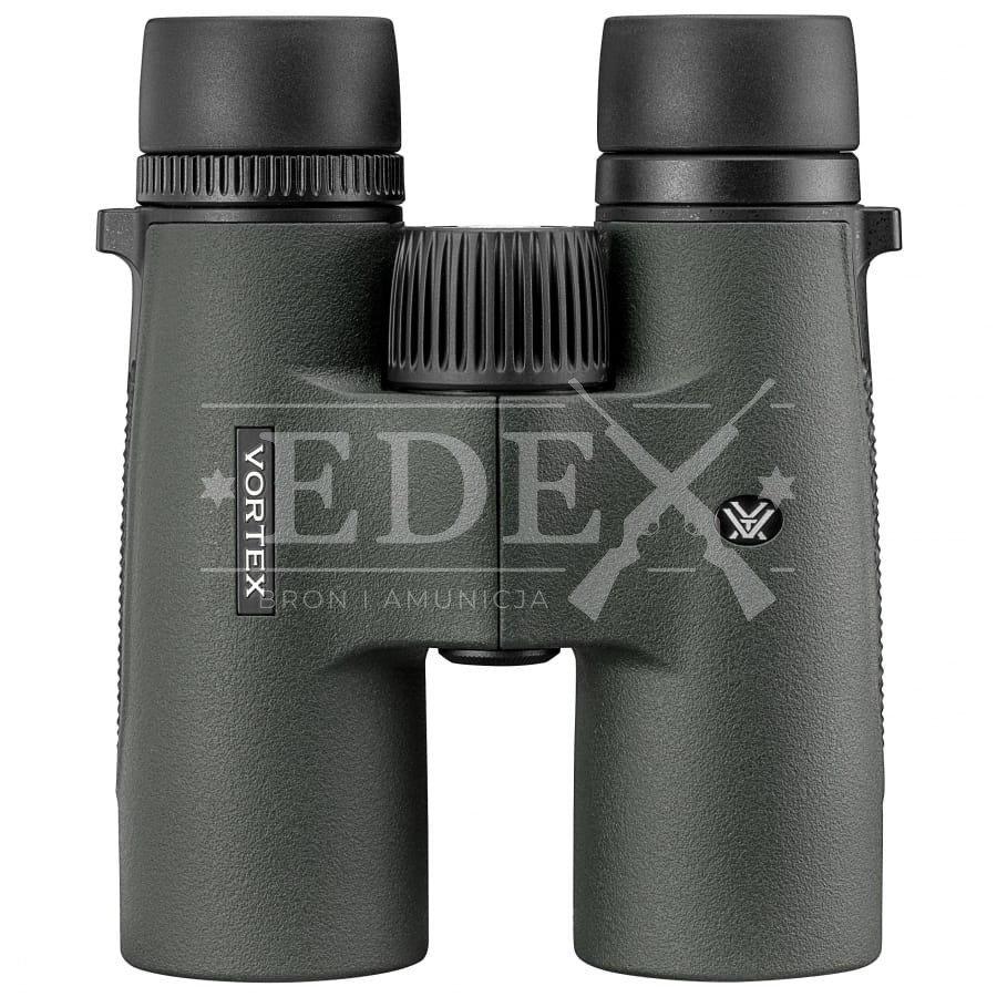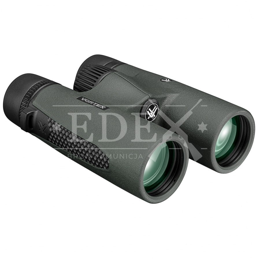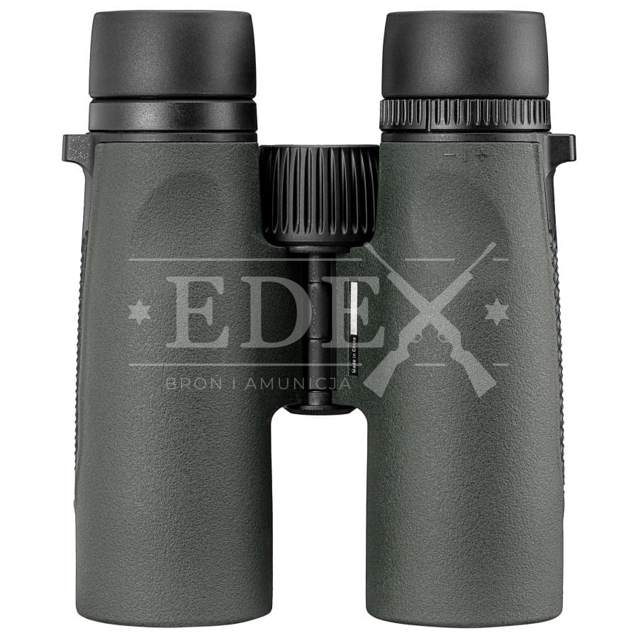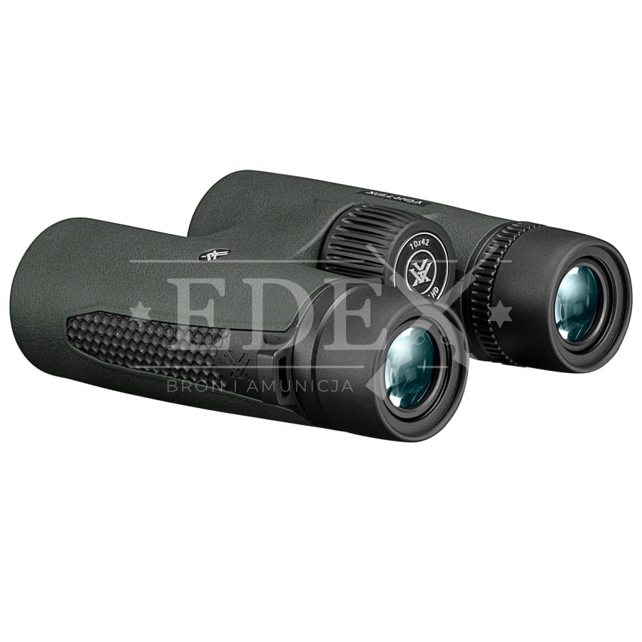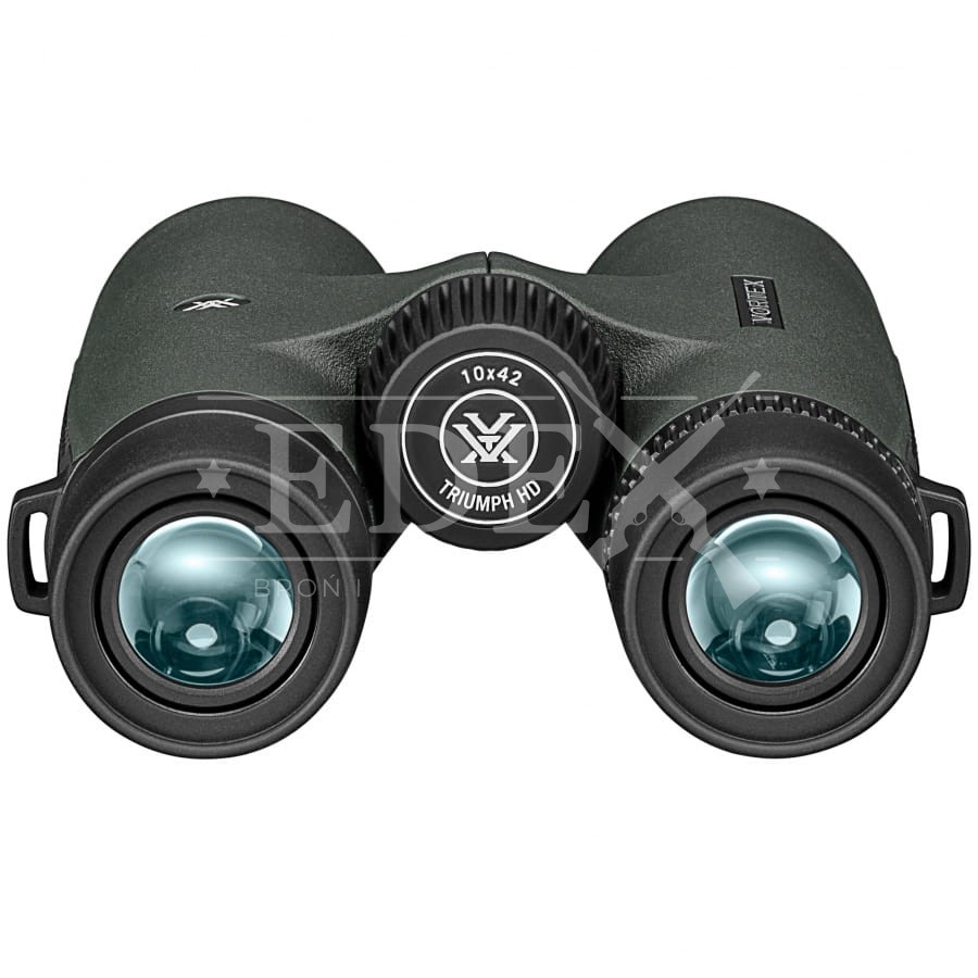 Konstrukcja jest uszczelniona, co gwarantuje jej wodoodporność oraz ochronę przed zapyleniem wnętrza. Wypełnienie azotem chroni optykę przed parowaniem w niskich temperaturach. Powierzchnia lornetki została pokryta gumowym tworzywem antypoślizgowym, który zapewnia dodatkową ochronę oraz pewny chwyt, nawet w wilgotnych warunkach. Vortex Triumph HD 10x42 posiada również regulowaną długość muszli ocznych, co umożliwia jej dostosowanie do użytku z okularami, zapewniając komfort podczas obserwacji.