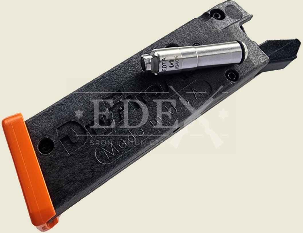 Istnieje również alternatywny sposób korzystania z SURESTRIKE™ MAG. Podczas wizyty na strzelnicy włóż SURESTRIKE™ MAG do pistoletu na krótką sesję rozgrzewkową. Poświęć kilka minut na ćwiczenia bez ostrej amunicji. Następnie wyjmij SURESTRIKE™ MAG, zastąp go załadowanym magazynkiem i kontynuuj strzelanie bojowe. Jeśli w trakcie treningu pojawią się problemy z celnością lub inne trudności, po sprawdzeniu komory możesz płynnie wrócić do SURESTRIKE™ MAG i przez chwilę ćwiczyć bez odrzutu i huku strzału. Takie łatwe przechodzenie między strzelaniem bojowym a treningiem na sucho pozwala korygować konkretne błędy i doskonalić umiejętności. Zawsze stawiaj bezpieczeństwo na pierwszym miejscu i miej pełną świadomość stanu swojej broni.