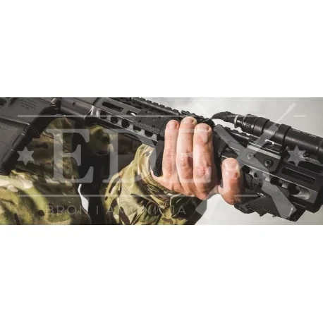 Poprawia kontrolę nad bronią w czasie strzelania i dodatkowo zapobiega przed przypadkowym zsunięciem się dłoni.