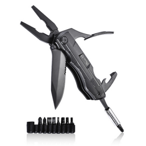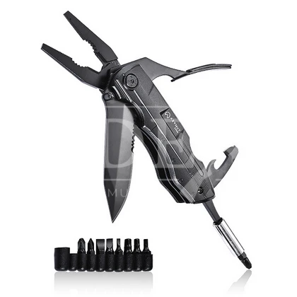 Wygodne i trwałe rękojeści pokryte czarnymi antypoślizgowymi okładzinami o taktycznym wyglądzie imitującym zamek pistoletu, możliwość otwarcia noża jedną ręką dzięki zastosowaniu tzw. kołka do otwierania kciukiem, wygodnie obsługiwane, rozkładane kombinerki oraz duża ilość bitów - to główne atuty tego taktycznego multitoola.