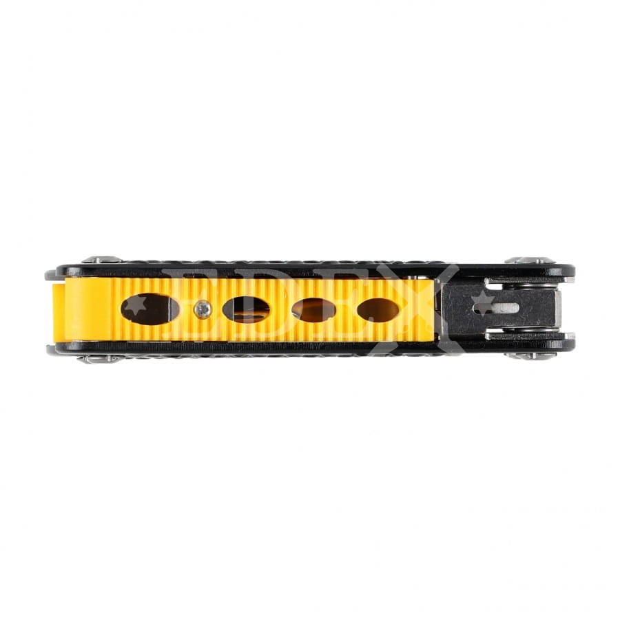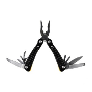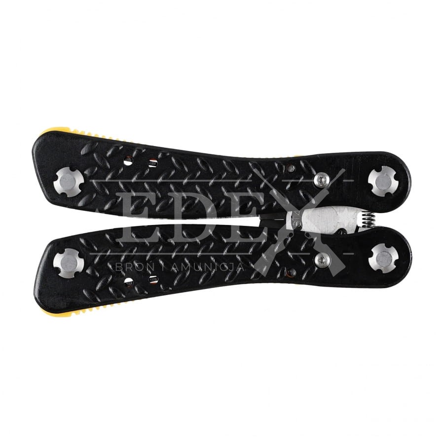 Na uwagę zasługuje solidne wykonanie oraz bezpieczne umieszczenie zestawu narzędzi w rękojeściach multitoola. Rękojeść została wykonana z wytrzymałego aluminium, a ostrza ze stali nierdzewnej. Pewny chwyt umożliwiają karbowane brzegi i ergonomicznie profilowana rękojeść. W komplecie 9 bitów oraz funkcjonalny pokrowiec z możliwością przypięcia do pasa.