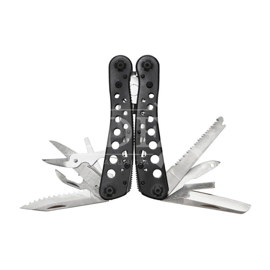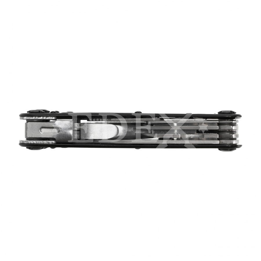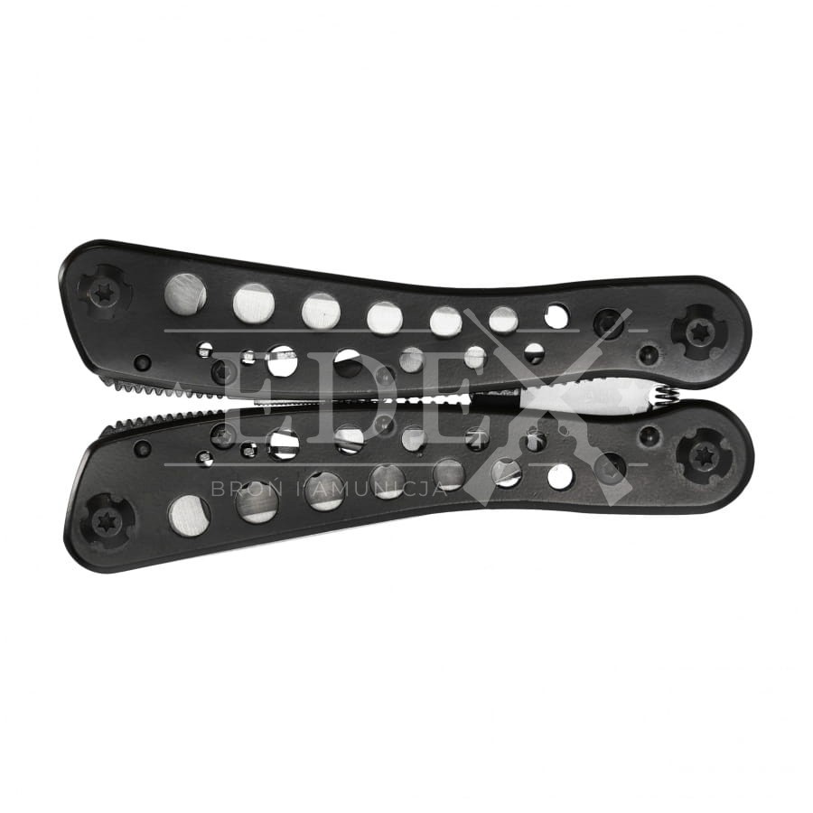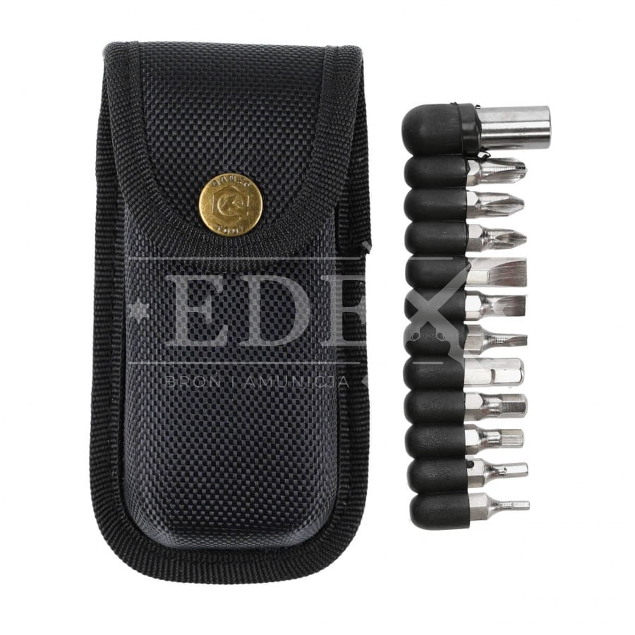 Rękojeść została wykonana z wytrzymałego aluminium, a ostrza ze stali 440C. Pewny chwyt umożliwiają karbowane brzegi. W komplecie 11 bitów oraz pokrowiec z możliwością przypięcia do pasa.
