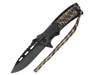 NÓŻ SKŁADANY MIL-TEC PARACORD Z KRZESIWEM - CAMO