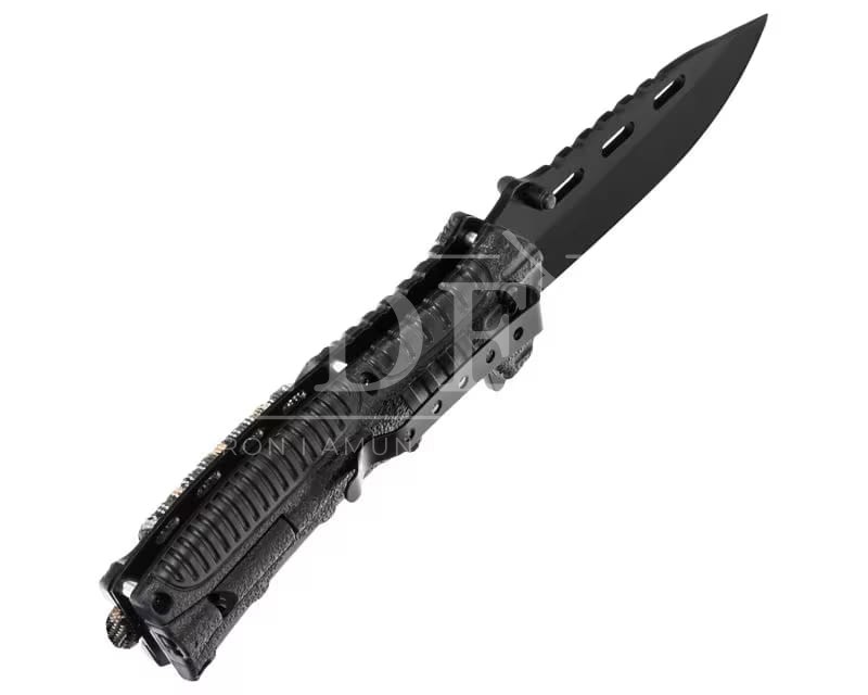 Na grzbiecie głowni umieszczono perforacje i ryflowania, które zmniejszają wagę noża. Powierzchnia jest oksydowana, co niweluje odblaski i zabezpiecza przed korozją. Szlif ostrza i klinga zakończona ostrym czubkiem zapewniają wysoką odporność na tępienie i precyzję użytkowania.