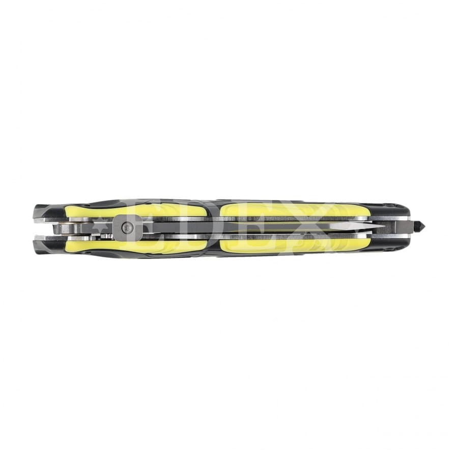 Rolę blokady pełni mechanizm liner-lock, ceniony za wytrzymałość, prostotę i wygodę użytkowania. Za wygodę i wytrzymałość narzędzia odpowiada ergonomiczną rękojeść, którą tworzą gumowane okładziny oraz stalowe wkładki wzmacniające. Na chwycie naniesiono żółte wstawki, które zwiększają widoczność noża warunkach słabego oświetlenia.