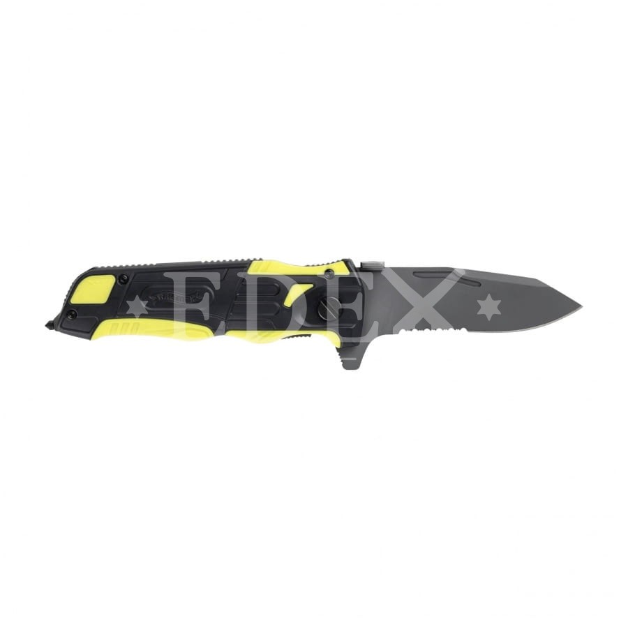 Krawędź tnąca jest częściowo ząbkowana, co jest szczególnie istotne w sytuacjach awaryjnych, ponieważ ratownik jest często zmuszony do cięcia włóknistych materiałów np. taśm, odzieży, lin itp. Zastosowanie szlifu wklęsłego powoduje, że cięcie jest bardzo płynne, a ostrze nie klinuje się w ciętym materiale. Do rozkładania głowni służy powiększony dysk, który pozwala na obsługę noża również w rękawicach. Frezy na grzbiecie głowni pełnią funkcję rampy dla kciuka lub palca wskazującego, ułatwiając tym samym operowanie nożem.