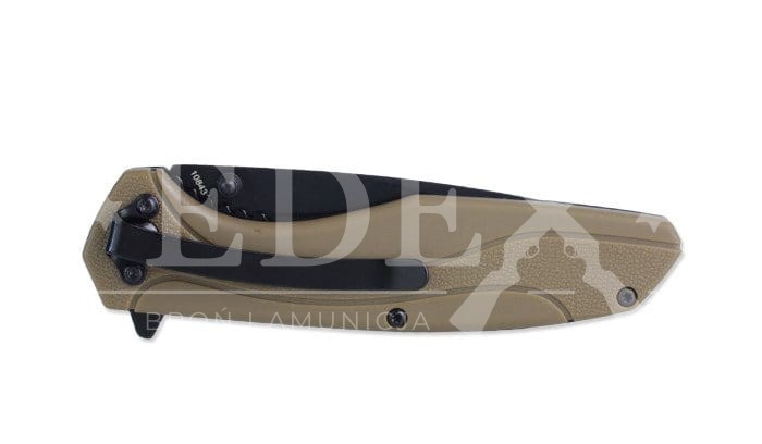 Wszystkie elementy, poza okładzinami które mają kolor FDE (Flat Dark Earth), są oksydowane na czarno, dzięki czemu nóż dobrze sprawdzi się w taktycznych sytuacjach.