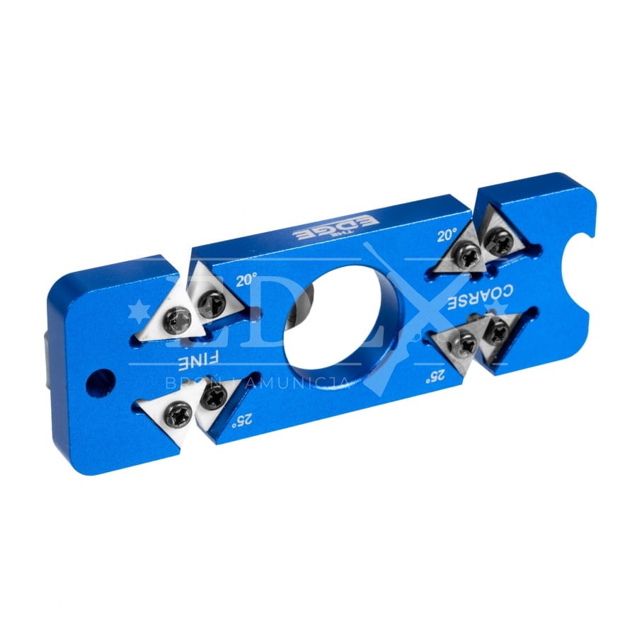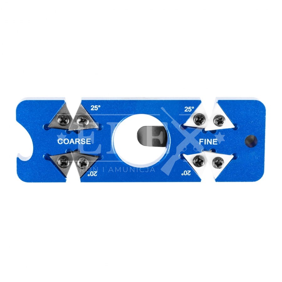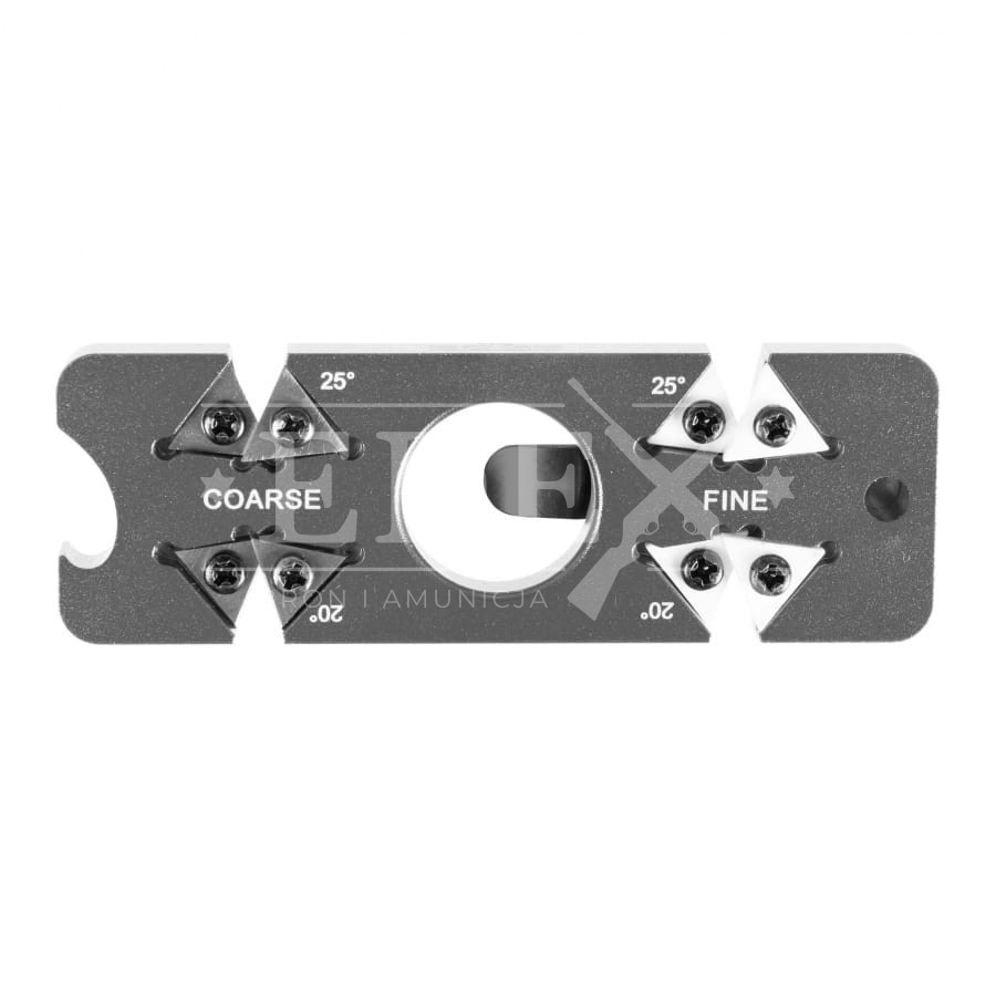 THE EDGE edcSHARP to ostrzałka typu V, w której powierzchnie ścierne ustawiono pod stałymi kątami 20° i 25°. Są to kąty ostrzenia najczęściej stosowane w nożach edc, outdoorowych i myśliwskich, dlatego za pomocą jednej kieszonkowe ostrzałki możemy naprawić noże o różnym przeznaczeniu. Tę funkcjonalność szczególnie docenią osoby nieposiadające doświadczenia w ostrzeniu oraz użytkownicy, którzy chcę w szybki i skutecznie naprawić ostrze w warunkach terenowych. Do ostrzenia zastosowano trójkątne płytki ceramiczne i wolframowe, które można w łatwy sposób demontować do czyszczenia. Taka konstrukcja ma jeszcze jedną zaletę, po wytarciu lub uszkodzeniu krawędzi, możemy po prostu obrócić płytkę i korzystać z nowej powierzchni ściernej.