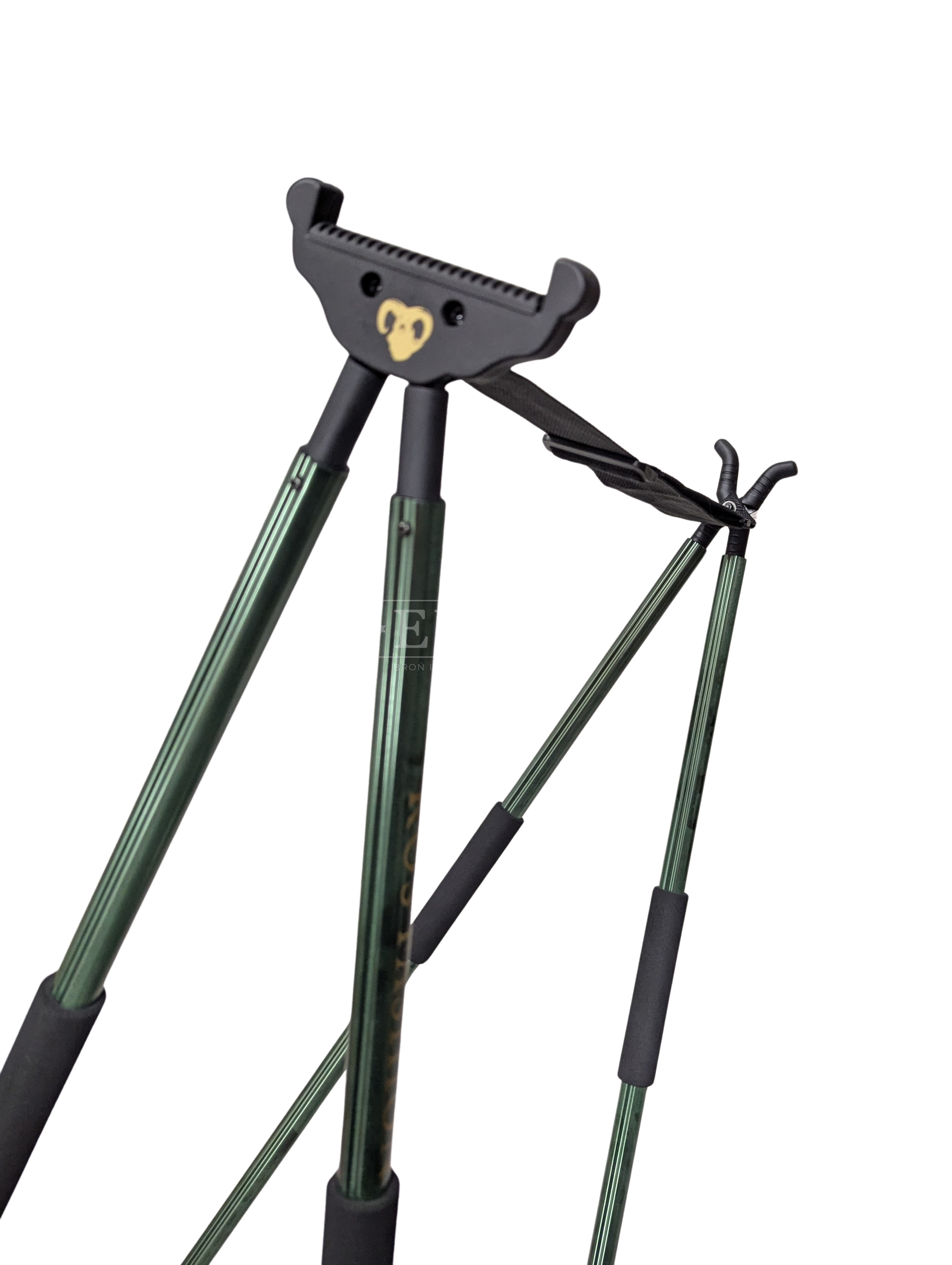 Pastorał myśliwski marki KOS-Fashion czteronożny pastorał z dwoma punktami podparcia działa w oparciu o system ''tajga''.
