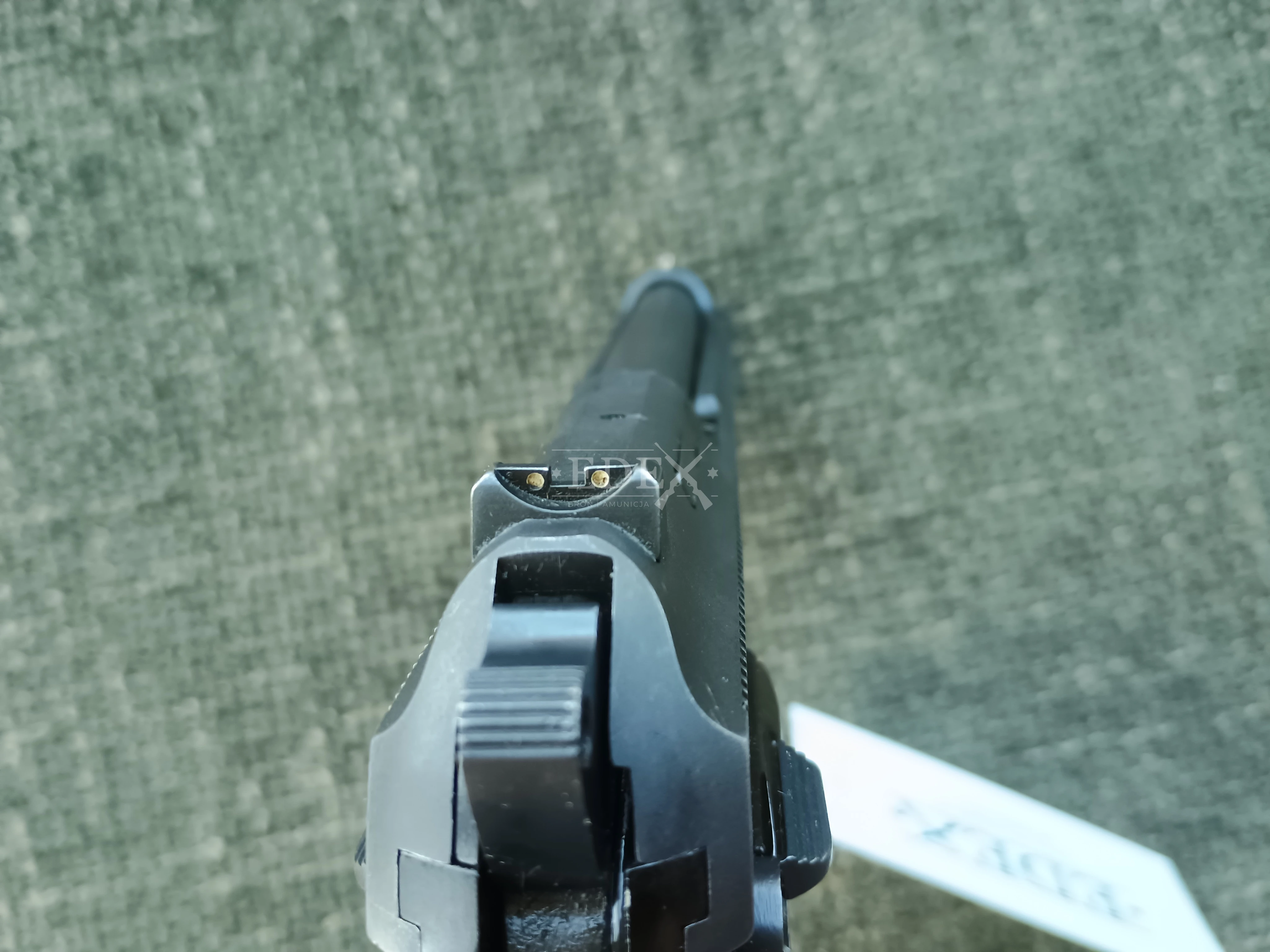 Jeden magazynek w zestawie, pistolet posiada bezpiecznik i dekoker na szkielecie a nie na zamku, dzięki czemu nie ma problemów z przypadkowym zabezpieczeniem broni.