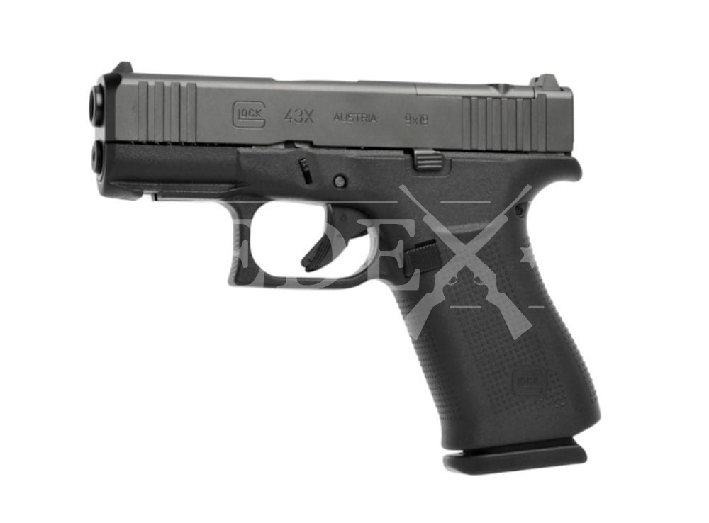 Glock 43X MOS wyposażony został w kompaktowy szkielet Slimline i czarny zamek wykończony nDLC. Pomimo zmniejszenia rozmiarów pistolet cechuje się wysoką ergonomią oraz bardzo wygodnym chwytem, który pasuje niemal do każdej dłoni. Jednorzędowy magazynek mieści 10 nabojów, dzięki czemu pistolet doskonale sprawdzi się jako broń do skrytego lub codziennego noszenia. Zamek posiada frezowanie umożliwiające zastosowanie celowników opto-elektronicznych.