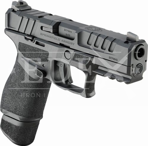 Pistolet został zaprojektowany zgodnie z najnowszymi trendami i standardami dlatego w standardzie uzyskujemy pełną obustronność konstrukcji: zdublowany zrzut magazynka oraz zamka. Zrzut zamka jest cofnięty i dobrze wpisany w kształt chwytu co zmniejszy prawdopodobieństwo nie zatrzymywania się zamka po ostatnim strzale przy niedostosowanym chwycie. Głębokie wycięcia w zamku z pewnością ułatwią przeładowanie, konstruktorzy pomyśleli o szerokim gronie odbiorców i przewężenie do pewniejszego przeładowania znajduje się na przedzie zamka oraz standardowo w tylnej części zamka.