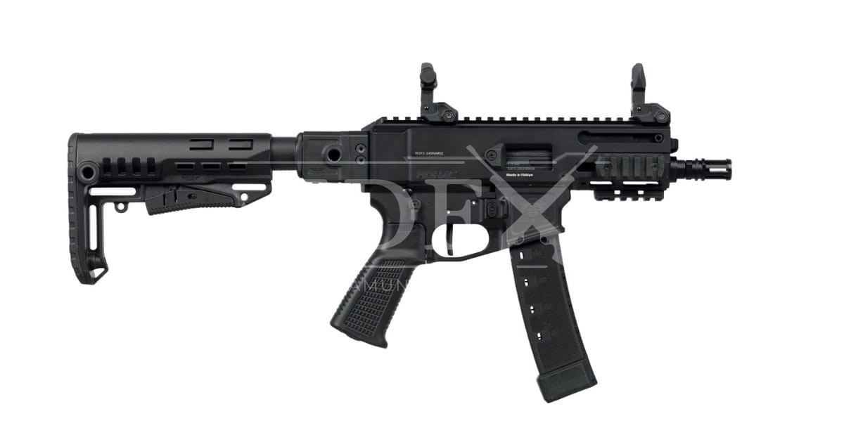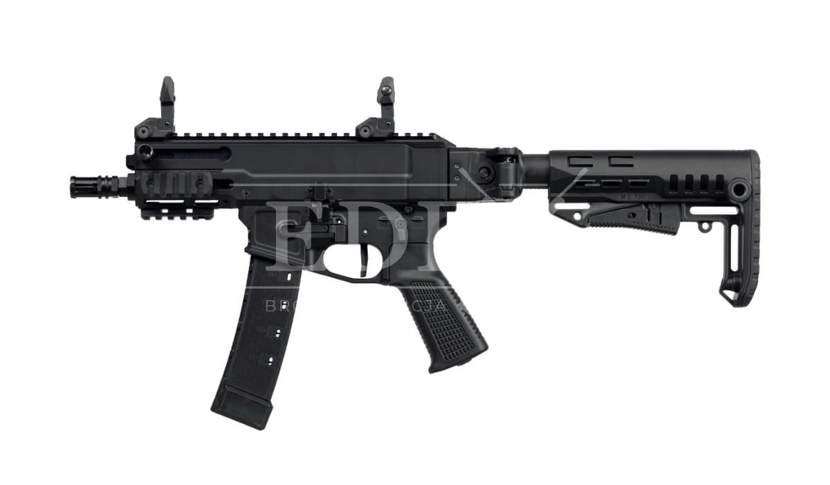 - obustronne manipulatory (selektor, bezpiecznik, zrzut zamka, blokada magazynka, rączka przeładowania posiada możliwość przełożenia na jedną ze stron),