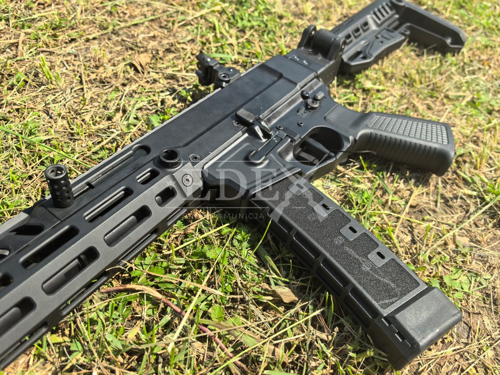 - obustronne manipulatory (selektor, bezpiecznik, zrzut zamka, blokada magazynka, rączka przeładowania posiada możliwość przełożenia na jedną ze stron),