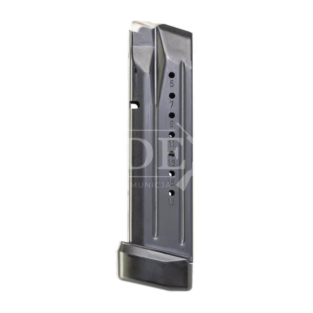 W zestawie cztery metalowe magazynki o pojemności 17 naboi każdy z powiększoną stopką dla łatwiejszej pracy z magwellem.