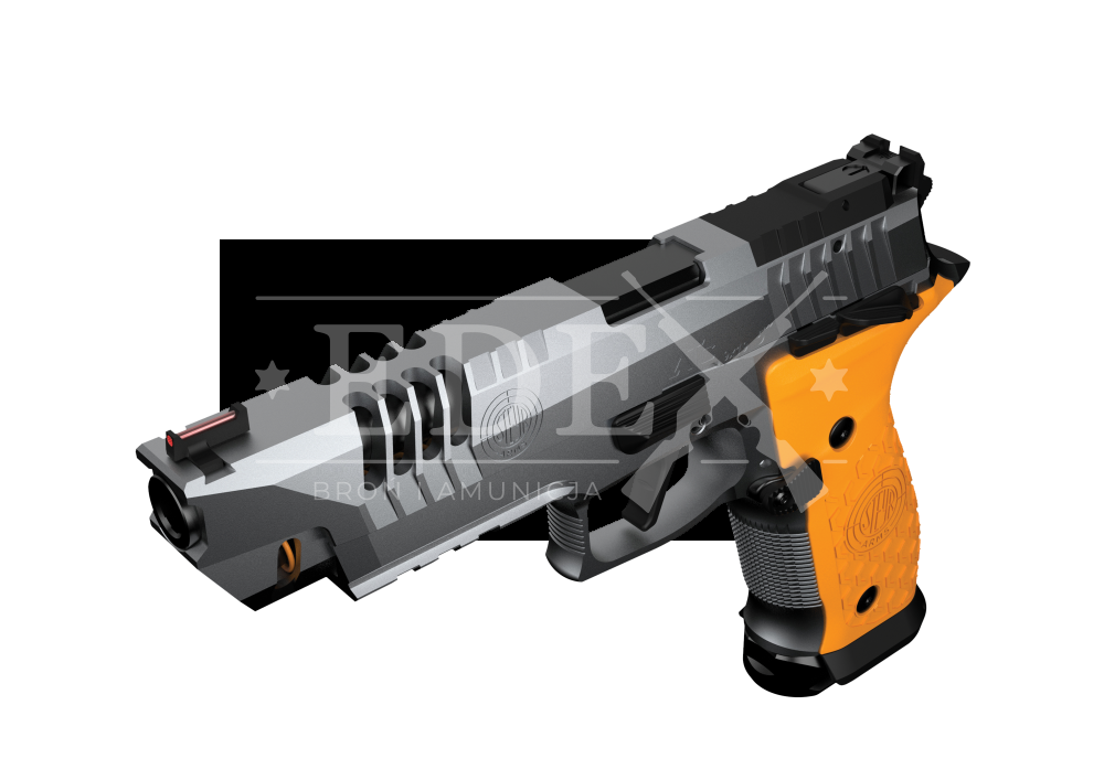 Model wyposażono w mechanizm SA/DA o krótkim i czystym przełamaniu oraz szybkim resecie, co umożliwia precyzyjne prowadzenie ognia i skuteczne zarządzanie seriami. Regulowany system sprężyny powrotnej zmniejsza podrzut lufy i ogranicza zmęczenie podczas dłuższych sesji treningowych lub zawodów. Zamek w standardzie OR umożliwia montaż kolimatora, a światłowodowa muszka zapewnia szybkie namierzanie celu.