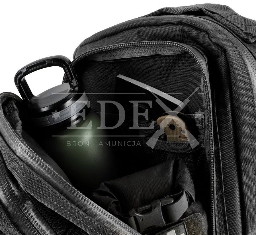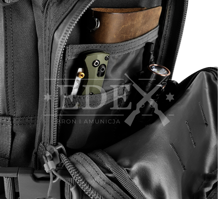 - System MOLLE/PALS na froncie i bokach – możliwość rozbudowy plecaka o dodatkowe kieszenie i zasobniki.