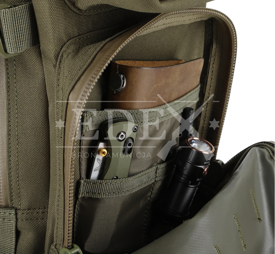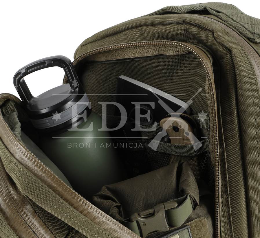 - System MOLLE/PALS na froncie i bokach – możliwość rozbudowy plecaka o dodatkowe kieszenie i zasobniki.