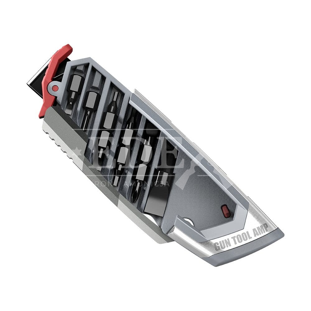 Narzędzie wielofunkcyjne Gun Tool AMP wykonane w całości ze stali, multitool posiada zestaw 24 narzędzi do konserwacji i serwisowania broni. Kompaktowa konstrukcja z łatwością zmieści się w plecaku razem z przenoszonym sprzętem, posiada możliwość przypięcia do pasów w systemie MOLLE lub w kieszeni spodni. Narzędzie można przedzielić na dwie części dzięki systemowi Quick-Deploy