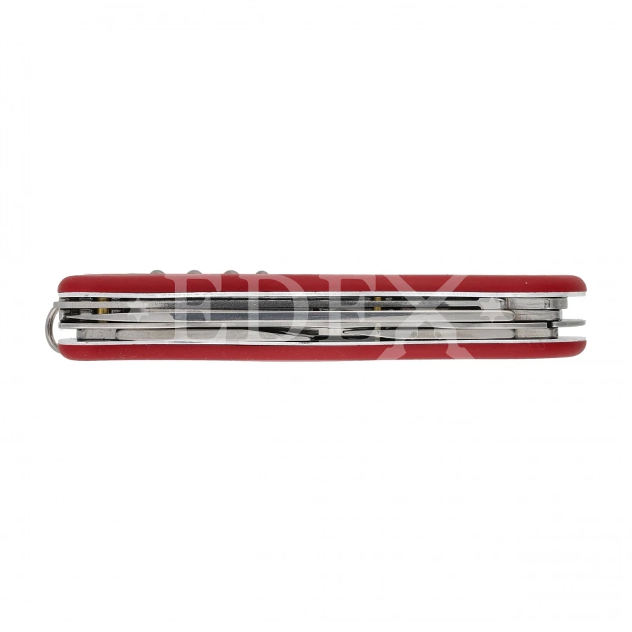Scyzoryk ma masywną i wytrzymałą konstrukcję o długości 111 mm, tworzącą po rozłożeniu pełnowymiarowe narzędzie outdoorowe. Wszystkie narzędzia wykonano ze szwajcarskiej stali nierdzewnej, odpornej na zużycie i korozję. W tym modelu zawarto 12 narzędzi, które pomogą nam w drobnych naprawach, przygotowaniu posiłku oraz przetrwaniu w ekstremalnej sytuacji. Na szczególną uwagę zasługują duże blokowane ostrze, wydajna piła do drewna oraz blokowany otwieracz do butelek pełniący także funkcję płaskiego wkrętaka.