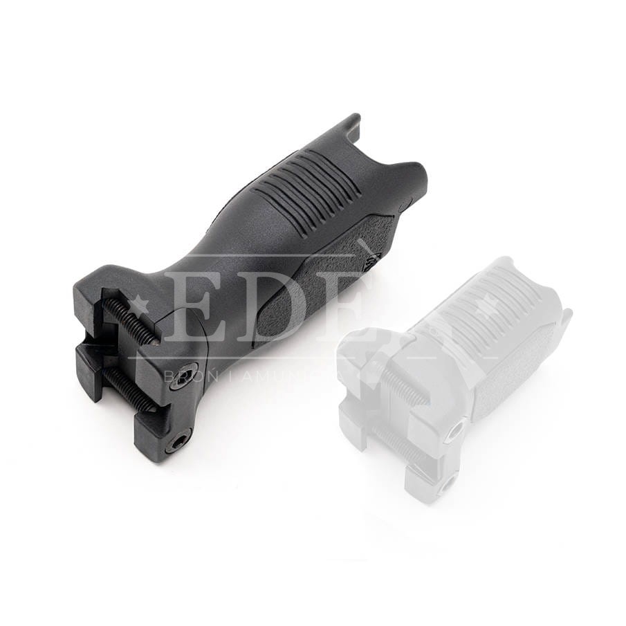 Angled Vertical Grip zrobiony jest z wytrzymałego polimeru o antypoślizgowej fakturze po bokach. Wersja Long dodatkowo posiada wyprofilowaną dolną część, która umożliwia stabilne oparcie broni o np. stanowisko strzeleckie.
