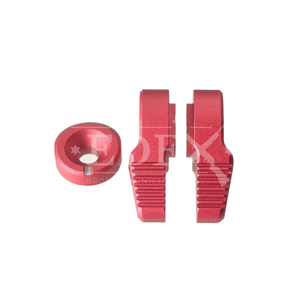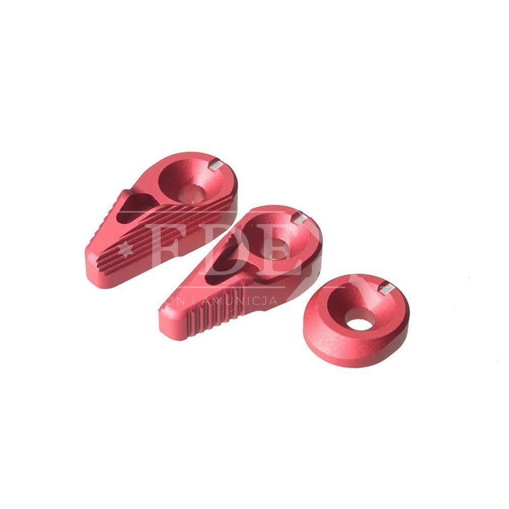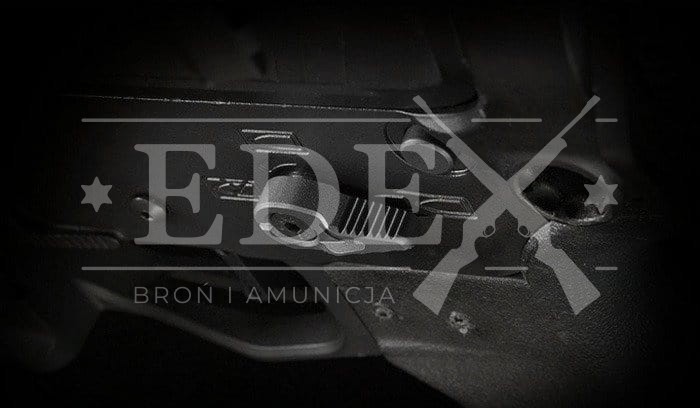 Obustronny selektor ognia przeznaczony do karabinków AR-15 cechujący się zwiększoną w stosunku do klasycznego selektora powierzchni kontaktu z palcem.