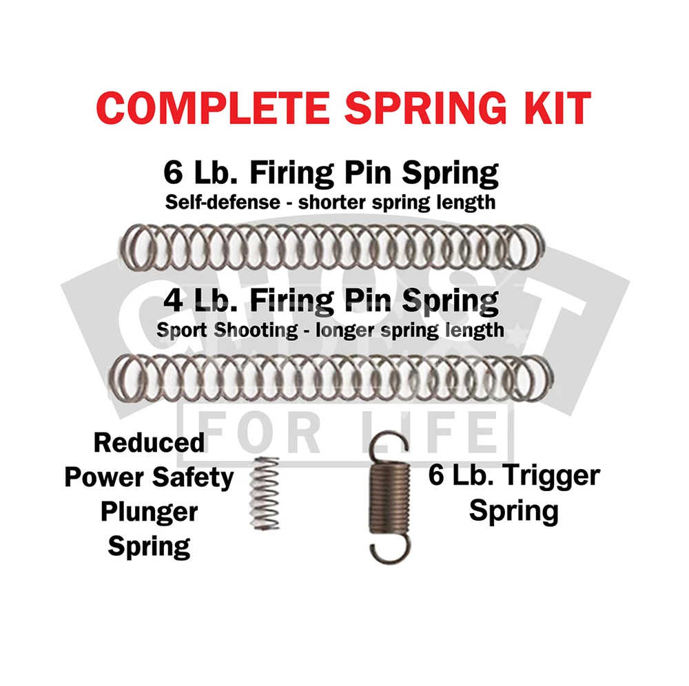 Znajdujące się w zestawie sprężyny iglicy pozwalają użytkownikowi dobrać właściwą do odpowiednich zastosowań. Sprężyna 4.0 dedykowana jest do sportu, a sprężyna 6.0 – do zastosowań EDC (samoobrony).