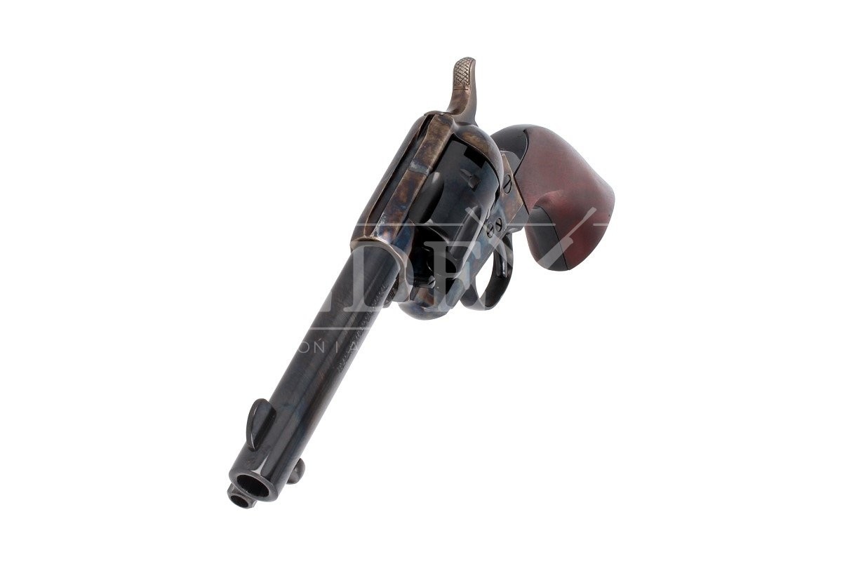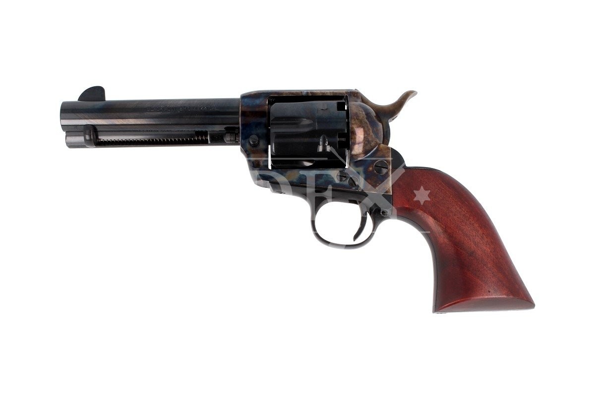1873 Single Action Army .44 to najsłynniejszy rewolwer Samuela Colta znany jako Peacemaker. Sześciostrzałowy kapiszonowy rewolwer czarnoprochowy w kalibrze .44, ładowany odprzodowo z ramą hartowaną ogniowo. Lufa 4.75 cala - najbardziej poręczna do szybkiego strzelania na krótkich dystansach.
