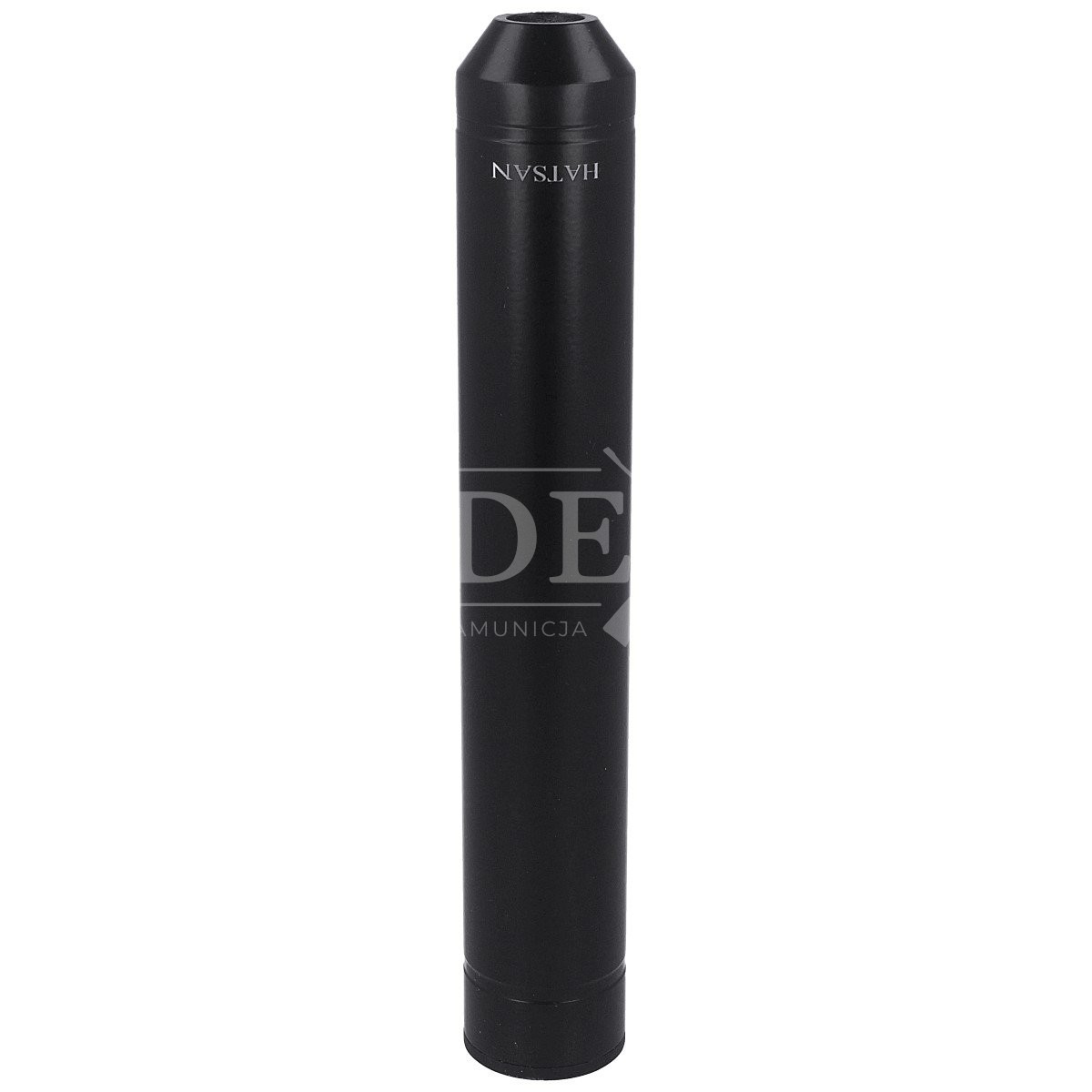 SOUND MODERATOR, aluminiowy tłumik dźwięku firmy Hatsan Arms. Redukuje odgłos wystrzału o -50%. Do wszystkich modeli z lufą zakończoną gwintem zewnętrznym 1/2" UNF (również innych producentów). Pasuje do wiatrówek sprężynowych: Dominator Carbine, MOD 135 SP, MOD 88, MOD 25 SuperCharger, MOD 25 SuperTact oraz wiatrówek PCP serii: AT-P, AT44, BT65, BT65-ELITE, GALATIAN, GALATIAN CARBINE, w kalibrach: kal. .177 (4.5 mm), kal. .22 (5.5 mm), kal. .25 (6.35 mm). Waga około 200 g.